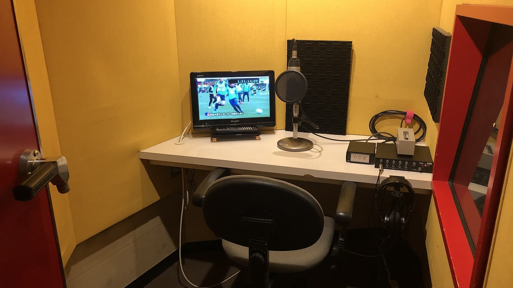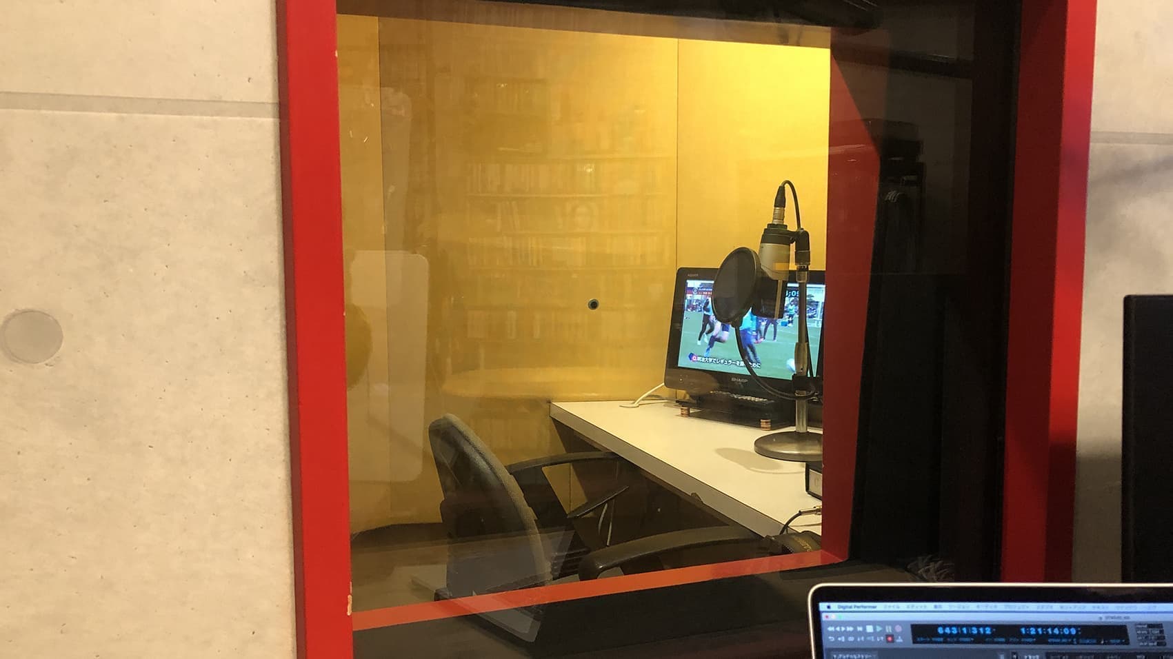 大型ビジョンの新宿配信センターは、MAスタジオも完備。ナレーション収録用のアナウンスブースもございます。訴求力を高めるために、音声も大きな役割を果たします。ビジョン用など、屋外で放映することを考慮した音声調整をエンジニアがおこないます。